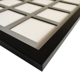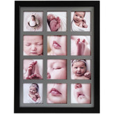 قاب عکس پازلی 12 عکس از بهترین جنس پی وی سی قاب عکس مشکی و ام دی اف خاکستری شبکه ای ساخته شده است. این قاب دارای 12 جای عکس8 در 8 سانت میباشد. این قاب هم مناسب عکس های ماهگرد کودک و هم مناسب عکسها و خاطرات خانوادگی و دوستانه است. با استفاده از این قاب میتوانید خاطرات زیبایتان را در یک نگاه ببینید. در پشت قاب چند عدد پین مشکی وجود دارد که با صاف کردن آنها با دست قاب به آسانی باز میشود و عکسها را پشت ام دی اف شبکه ای با چسب کاغذی یا آبی میچسبانید. قاب عکس پازلی جلوه ی زیبایی به منزلتان میبخشد. قاب دارای آویز دیواری میباشد.