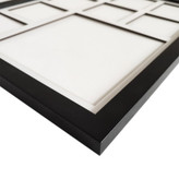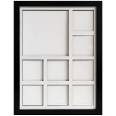 قاب عکس چند عکسی یا پازلی 9 عکس از بهترین جنس پی وی سی قاب عکس مشکی و ام دی اف سفید شبکه ای ساخته شده است. این قاب دارای 8 جای عکس 8در 8 سانت و یک جای عکس 18در 18 میباشد. با استفاده از این قاب میتوانید خاطرات زیبایتان را در یک نگاه ببینید. در پشت قاب چند عدد پین مشکی وجود دارد که با صاف کردن آنها با دست قاب به آسانی باز میشود و عکسها را پشت ام دی اف شبکه ای با چسب کاغذی یا آبی میچسبانید. این قاب مناسب عکسهای خانواده ، دوستانه و کودکان میباشد و جلوه ی زیبایی به منزلتان میبخشد. قاب دارای آویز دیواری میباشد.