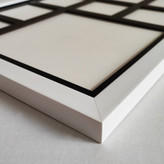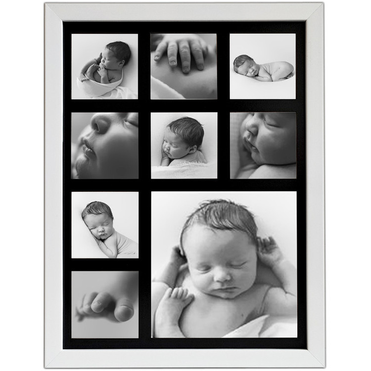 قاب عکس چند عکسی یا پازلی 9 عکس از بهترین جنس پی وی سی قاب عکس سفید و ام دی اف مشکی شبکه ای ساخته شده است. این قاب دارای 8 جای عکس 8در 8 سانت و یک جای عکس 18در 18 میباشد. با استفاده از این قاب میتوانید خاطرات زیبایتان را در یک نگاه ببینید. در پشت قاب چند عدد پین مشکی وجود دارد که با صاف کردن آنها با دست قاب به آسانی باز میشود و عکسها را پشت ام دی اف شبکه ای با چسب کاغذی یا آبی میچسبانید. این قاب مناسب عکسهای خانواده ، دوستانه و کودکان میباشد و جلوه ی زیبایی به منزلتان میبخشد. قاب دارای آویز دیواری میباشد.