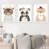 تابلو دکوراتیو اتاق کودک طرح روباه و پاندا و گوزن مجموعه 3 عددی