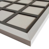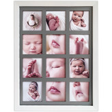 قاب عکس پازلی 12 عکس از بهترین جنس پی وی سی قاب عکس سفید و ام دی اف خاکستری شبکه ای ساخته شده است. این قاب دارای 12 جای عکس8 در 8 سانت میباشد. این قاب هم مناسب عکس های ماهگرد کودک و هم مناسب عکسها و خاطرات خانوادگی و دوستانه است. با استفاده از این قاب میتوانید خاطرات زیبایتان را در یک نگاه ببینید. در پشت قاب چند عدد پین مشکی وجود دارد که با صاف کردن آنها با دست قاب به آسانی باز میشود و عکسها را پشت ام دی اف شبکه ای با چسب کاغذی یا آبی میچسبانید. قاب عکس پازلی جلوه ی زیبایی به منزلتان میبخشد. قاب دارای آویز دیواری میباشد.