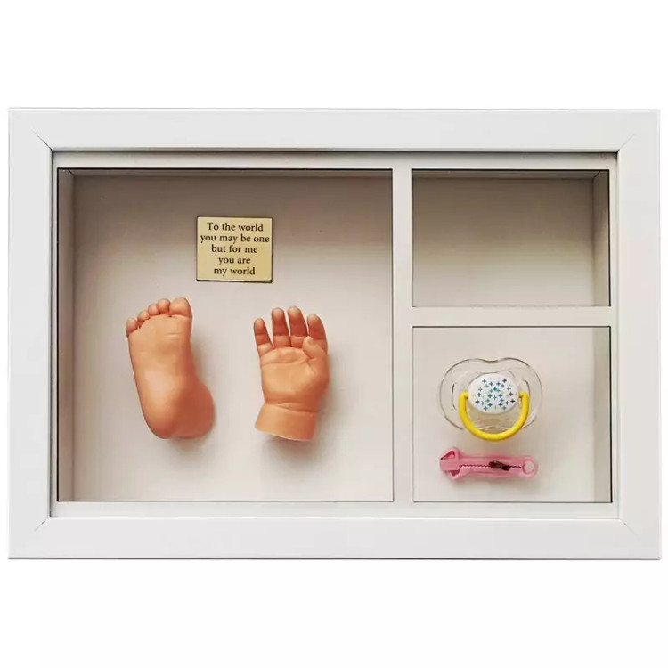 بعد از ساخت تندیس دست و پای کودکتان با مجموعه قالب گیری نی نی تندیس موجود در www.ninitandis.com وقت آن است که این یادگاری ارزشمند را قاب بگیرید. این محصول ، قاب باکس دار مخصوص تندیس دست وپای نوزاد و کودک و دیگر یادگاری های نوزادی مانند عکس کودک ، دستبند بیمارستان ، بندناف نوزاد ، پستانک ، مو و ناخن نوزاد میباشد. حتی میتوانید بجای تندیس، پاپوش نوزادی یا پیشبند یا کلاه و دستکش و جوراب نوزادی را در قاب بگذارید. روی قاب شیشه دارد که از خاک گرفتن وسایل جلوگیری میکند. پشت قاب چند عدد پین مشکی وجود دارد که به راحتی با صاف کردن پین ها میتوانید قاب را باز کنید و یادگاری های نوزادی دلبندتان را در آن بچسبانید تا برای همیشه ماندگار شود. قاب دارای آویز میباشد و میتوانید آن را به دیوار آویز کنید و از یادگاری های کودکی فرزندتان لذت ببرید.
