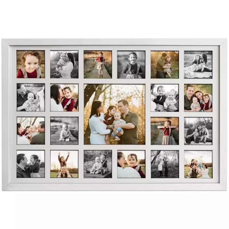 قاب عکس پازلی 21 عکس از بهترین جنس پی وی سی قاب عکس ام دی اف شبکه ای ساخته شده است. سایز کل این قاب 40 در 60 سانت میباشد و دارای 20 جای عکس 8x8 سانت و یک جای عکس 17/5x17/5 سانت میباشد. با استفاده از این قاب میتوانید خاطرات زیبایتان را در یک نگاه ببینید.و در یک فضای کوچک تعداد زیادی عکس داشته باشید. در پشت قاب چند عدد پین مشکی وجود دارد که با صاف کردن آنها با دست قاب به آسانی باز میشود و عکسها را پشت ام دی اف شبکه ای با چسب کاغذی یا آبی میچسبانید. این قاب مناسب عکسهای خانواده ، دوستانه و کودکان میباشد و جلوه ی زیبایی به منزلتان میبخشد. قاب دارای آویز دیواری میباشد.
