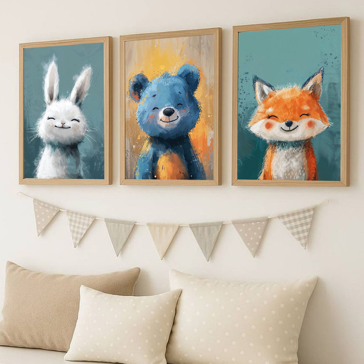 تابلو کودک نی نی تندیس مدل روباه و خرس بامزه مجموعه 3 عددی