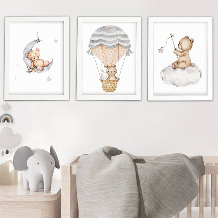 تابلو اتاق کودک مدل تدی بالن سوار مجموعه 3 عددی