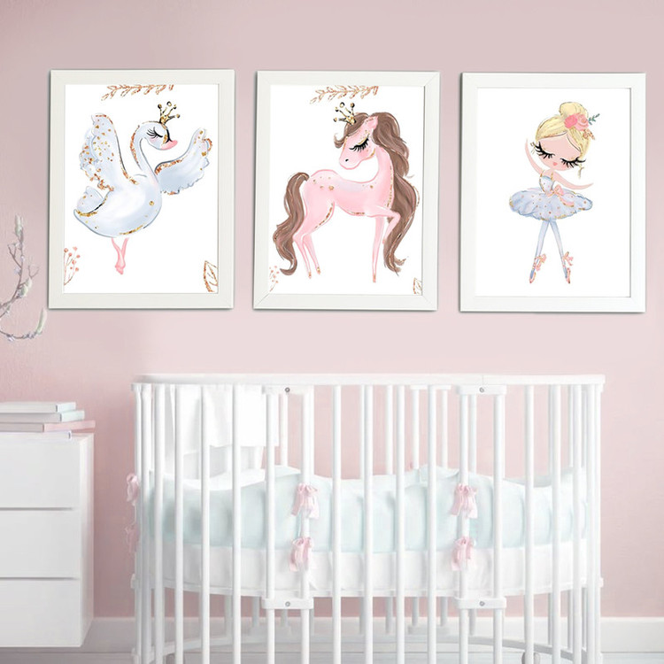 تابلو کودک مدل قو و اسب و دختر بالرین مجموعه 3 عددی