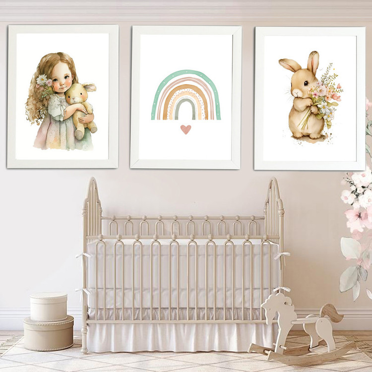 مجموعه 3 عددی قاب دکوراتیو اتاق کودک طرح دختر مهربون ، خرگوش و رنگین کمان از بهترین جنس پی وی سی قاب عکس بوده و طرحهای داخل قاب چاپ جوهرافشان باکیفیت روی کاغذ فتوگلاسه میباشد. قابها دارای آویز دیواری و شیشه میباشد. این مجموعه مناسب اتاق کودک و نوزاد میباشد. امکان باز کردن قاب و تعویض طرحها وجود دارد و میتوانید بعد از مدتی برای تنوع عکس خود را داخل قابها بگذارید.