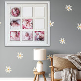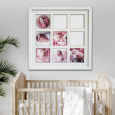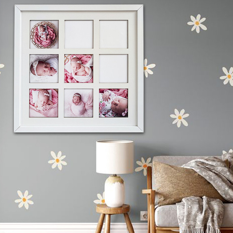 قاب عکس پازلی 9 عکس از بهترین جنس پی وی سی قاب عکس و ام دی اف سفید شبکه ای ساخته شده است. این قاب دارای 9 جای عکس 10 در 10 سانت میباشد. شما با استفاده از این قاب میتوانید خاطرات زیبایتان در دریک نگاه ببینید. پشت قاب دارای چند عددپین مشکی میباشد که با صاف کردن پین ها به راحتی قاب باز میشود و عکس ها را به پشت ام دی اف شبکه ای با چسب کاغذی یا آبی میتوانید بچسبانید. این قاب مناسب عکس های کودک و همینطور خانواده میباشد و جلوه ی بسیار زیبایی به منزلتان میبخشد. قاب پازلی دارای آویز دیواری است.