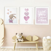 تابلو دکوراتیو کودک مدل دکوراتیو خرگوش و قلب و love مجموعه 3 عددی